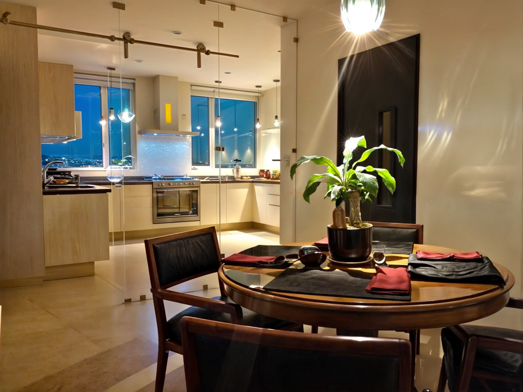 Cocina semi abierta digna de un chef: Despierta tu pasión culinaria en esta cocina amplia y moderna, con acceso directo al cuarto de lavandería y al cuarto de servicio. La iluminación diseñada para cocinar con la mejor calidad (Luz dirigida a las áreas de trabajo) te permitirá crear deliciosas obras maestras.